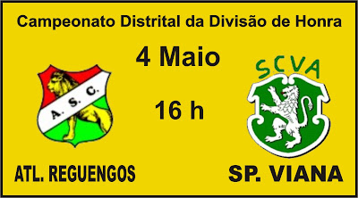 Redondense – Sp. Viana, este jogo nada trás para o campeonato, com a equipa do Redondo a garantir a manutenção na jornada passada. Quanto ao nosso Viana tentará vingar a derrota da primeira volta em Viana por dois a um, num jogo que marcará a estreia de Tiago Pires, júnior na baliza da nossa equipa. Uma vitória pode assegurar um sétimo lugar, lugar este bem positivo para uma equipa que subiu de divisão. Arbitragem de Vítor Rego.